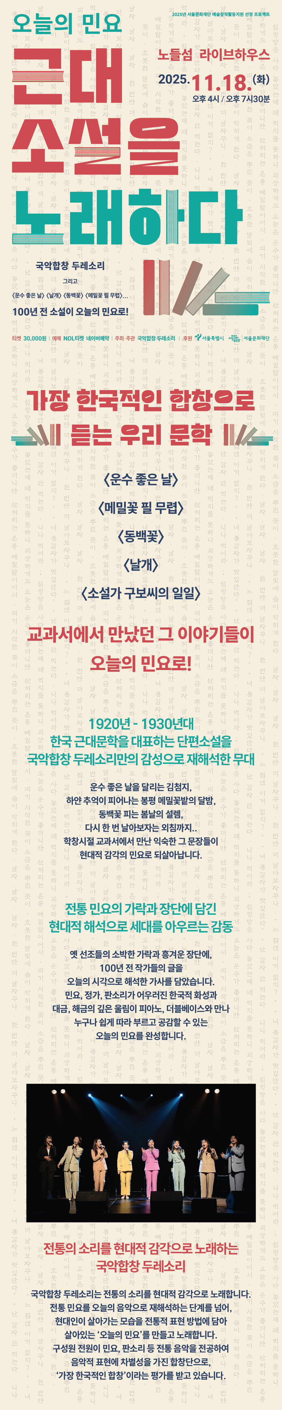 100년 전 작가들의 글을 오늘의 시각으로 해석한 가사를 담았습니다.
