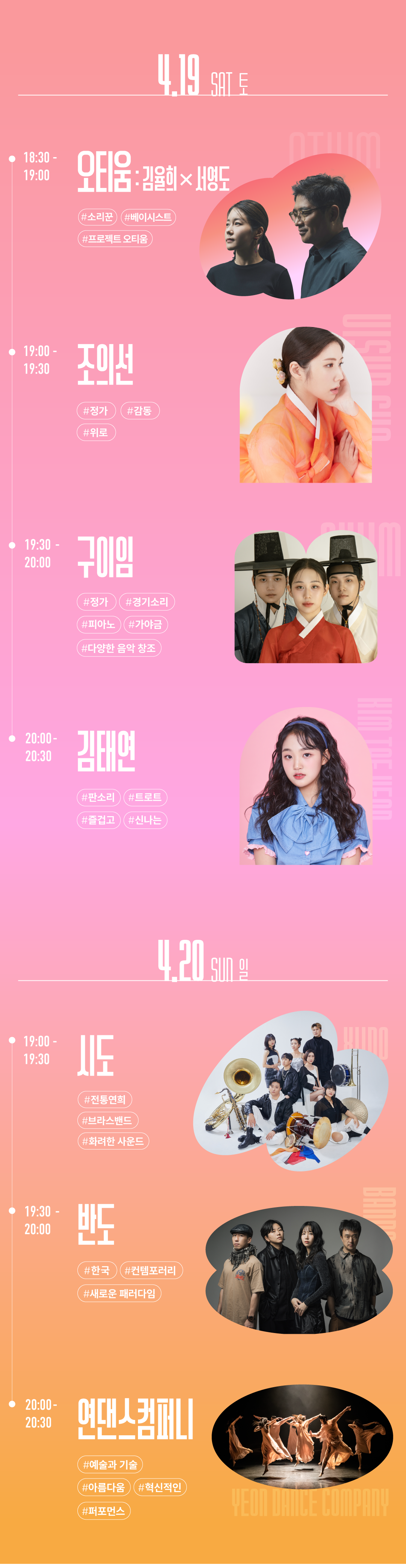– 아티스트 및 주최 측의 사정에 의해 출연 시간이 다소 변경 될 수 있습니다.