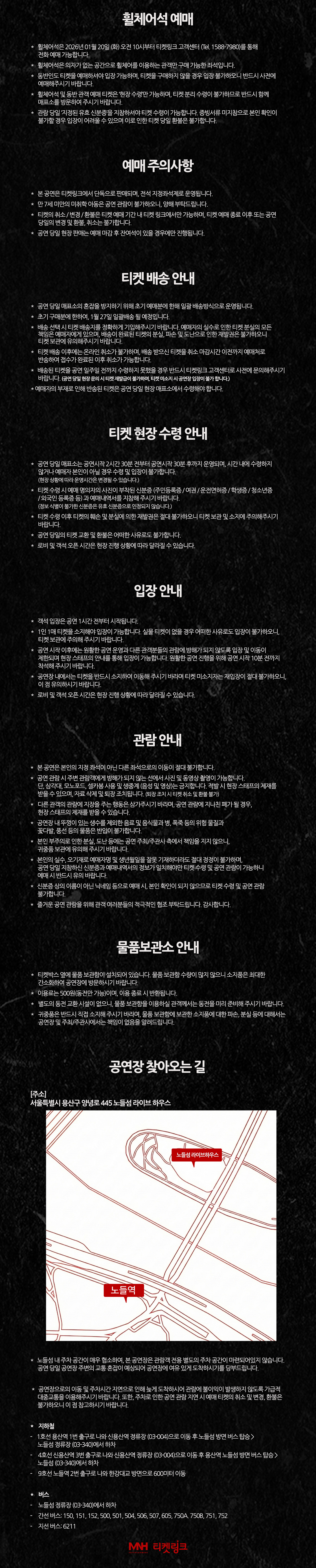 * 휠체어석 예매 : 2026년 01월 20일(화) 10시부터 티켓링크 고객센터(☎ 1588-7890 / 10:00~19:00)에서 예매 가능합니다.